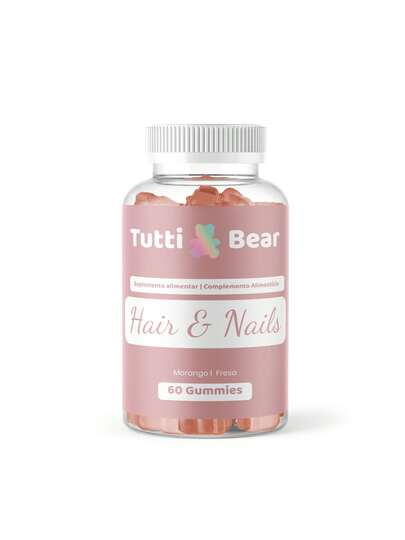 TuttiBear hårväxtgummier för starkare, glansigare hår | Veganskt tillskott med biotin, zink, folsyra och C-vitamin | Sockerfri jordgubbssmak | 1, 3 eller 6 månaders förbrukning ✅ Leverans inom 24/48 timmar - Andra - Visa 5