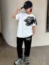 SHEIN Bolty Tween Boy Y2K Casual Short Sleeve Top And Flare Pants Set, Street Punk Rock Preppy Style Suitable For Daily Wear, Party, Summer