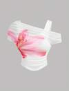 Girls' Casual 2 In 1 Streetwear T-Shirt, This T-Shirt Features Letter Slogan And Car Graphic Prints, With Cold Shoulder Short Sleeve Design, Suitable For Summer Leisure Activities, Shopping, And Photo Shoots.