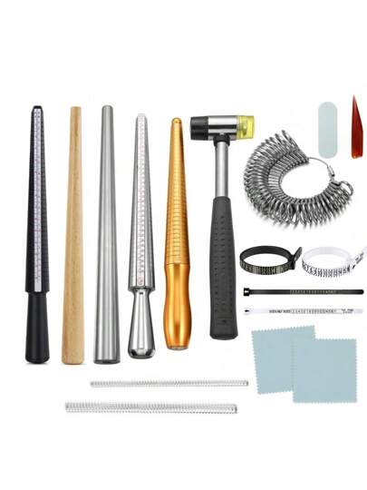 USUK Metal Sizing Tool - Ring Sizer 0-13, Ring Mandrel, Agate Polishing Blade, Polishing Stick, Random Color Silver Polishing Cloth, Random Color Plastic Caliper, Ring Size Selector Repair Polishing Tools, For Jewelry Ring Making Measurement - Multicolor - View 1