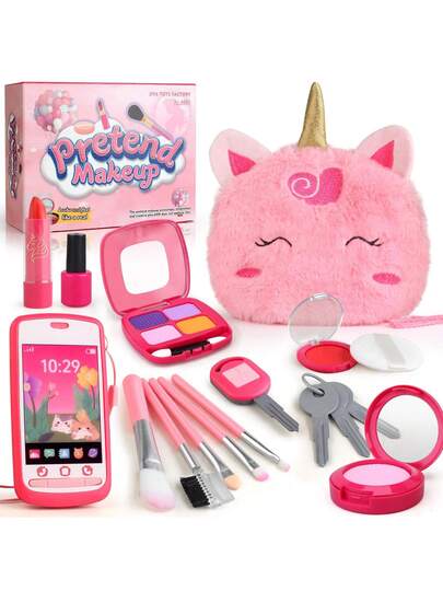 Unicorn Theme Children's Pretend Play Makeup Set, Children's Realistic Makeup Toy Set, Unicorn Theme Gift, Pretend Play Toy Set, Suitable For Little Girls, Halloween/Thanksgiving/Christmas Gift - Multicolor - View 1