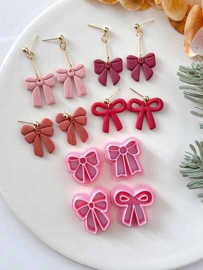 Unique Bow Series Clay Earring Mold, Polymer Clay Making Tool For Earrings, Pendants, Soft Clay Jewelry Making Kit, Clay Earring Molds For Jewelry Making Enthusiasts, DIY Handmade Tool, Made By PLA, Jewelry Making Tools - Pink - View 1