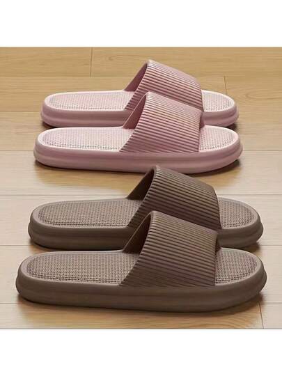 Unisex Quiet EVA Slippers - Non-Slip, Quick-Drying, Odor-Resistant, Indoor Slippers For Summer, Soft Textured Soles, Suitable For Home And Bathroom, Multiple Colors Available, Cute And Lightweight Slippers - Pink - View 1
