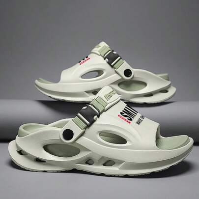 Men's Summer Thick-Soled Sandals, Two-Way Wear Open Toe Slippers, Breathable EVA Beach Shoes, Fashion Printed Adjustable Strap Casual Slides, Outdoor Sporty Footwear For Teenagers & Adults, Perfect For Beach, Pool, Gym, Daily Wear