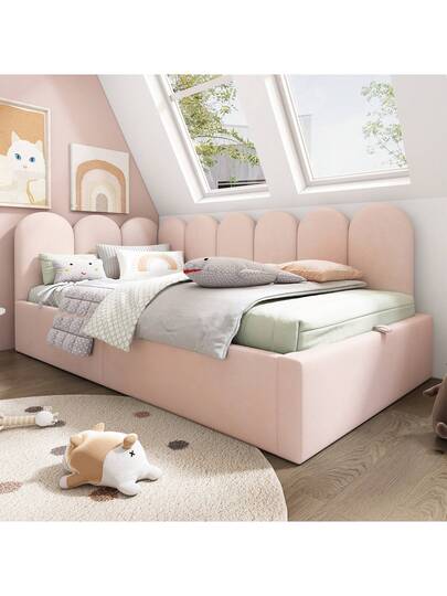 Upholstered Daybed 90x190 Cm, Daybed Sofa Bed With Hydraulic Storage, Children's Bed With Metal Slatted Base, Velvet, Pink, Without Mattress - Pink - View 1