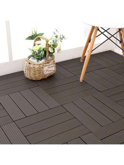 Product descriptions Properties of the WPC tiles: The WPC tiles are made of high-quality wood-plastic composites. Description: WPC consists of different proportions of wood, plastics and additives. This combination offers an appealing aesthetic of natural products. Ideal for: Perfect for terraces, balconies, bathrooms, pools or spas next to any location. Specifications: Dimensions: approx. 30x30 cm (11 tiles are required per m²) Choice of colors: anthracite, brown, light brown Material: WPC wood composite, biocomposite, free of tropical wood Size calculation: Approx. 1m² = 11 pieces 30x30 cm Approx. 2m² = 22 pieces 30x30 cm Approx. 3m² = 33 pieces 30x30 cm Approx. 5m² = 55 pieces 30x30 cm Product advantages: Frost-proof, weather-resistant Easy to install - no screws required Non-slip, splinter- and crack-proof, fireproof level B1 Termite-proof, insect-proof Easy to clean, only with neutral cleaners; no post-treatment necessary, such as impregnation or repainting Note: We advise against laying on bituminized ground. In addition, waterlogging on and under the terrace surface should be avoided. A water drainage system must be ensured.