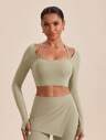 VARSITIE Enfärgad långärmad sport T-shirt för kvinnor med rynkande, mångsidig