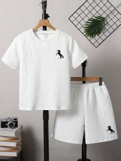 2-pack moderiktiga vita broderade t-shirts för tween-pojkar, lämpliga för sommarkläder, fotografering, skola, coola tween-pojkar-outfits - Vitt - Visa 2