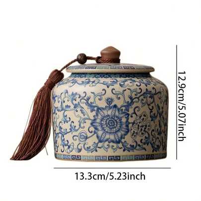 Vintage Blue And White Lotus Ceramic Round Jar, Home Decor, Storage Container, Tea Room Tabletop Cabinet Decorative Jar