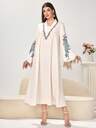 Kvinnors carving blomma chiffong långärmade foderklänningar Elegant långärmad dräkt Abaya Modest Kafftan Jalabiya Arabiska klänningar Ramadan Style