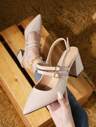 Dampumps med spetsiga tå och grov klack, mellanhöga skor med rosettdekor, nya produkter