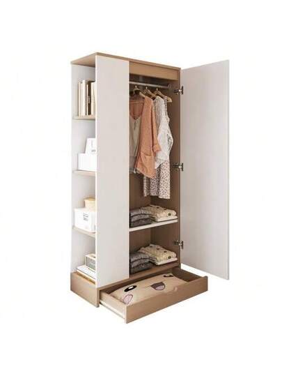 Wardrobe 70 X 40 X 170 Cm, Single-Door Model, With Shelves And Drawers, Pure White - Natural Color - View 1