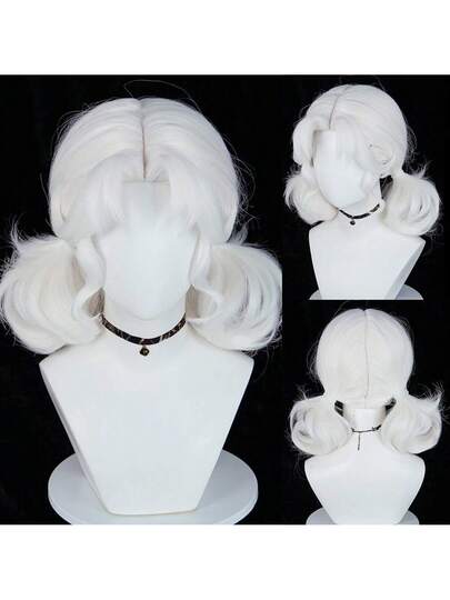 White Synthetic Short Straight Wigs Middle Part Anime Game Cosplay Fluffy Women Heat Resistant Wig For Daily Party - White - View 1
