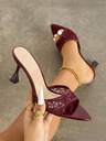 Dammode med höga klackar, spetsig tå, glänsande spegelyta, sexig och elegant, fotledsrem, lämplig för utekväll, fest, utomhus, kaffebrun färg, vår/sommar