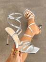 Damsandaler med hög klack, moderiktiga stilettklackar för fest och utomhusbruk, spetsig tå, glansigt texturerat material, sexigt och elegant, fotledsrem, vinröd färg, lämplig för vår/sommar