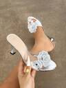Jin Bei Qi Damhöga klackar, modekvällsfest utomhus exklusiva tillfällen stilettos, spetsig tå glänsande spegelyta med färgglatt tyg, sexiga mule eleganta ljusrosa slip-on skor