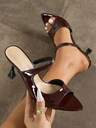 Damhöga klackar, vinfärgade, eleganta och sexiga, breda vampremmar med korsspänne och tunn rem, exklusiv spegelyta med delikat vågig textur, mogen och söt, öppen tå med tunna remmar, högklackade sandaler, moderiktiga mules med spetsig tå och kitten heel, lämpliga för nattklubb, fest, scenshow, dejt, bankett, utomhus, shopping, kontor, alla hjärtans dag, mors dag, kvinnodagen, present