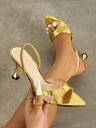 Högklackade skor för kvinnor, Mode Dam High-End Bankett Utomhusfest Metallisk spetsad tå Färgblockkilar, PU-läder Blommig utsmyckad Glänsande Bröllopsfest Kontor utomhus, Hela säsongen