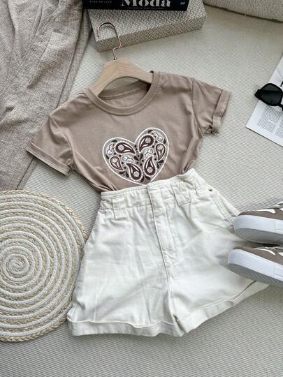 6. Women's Cotton T-Shirt Simple Style Big Heart Water Drop