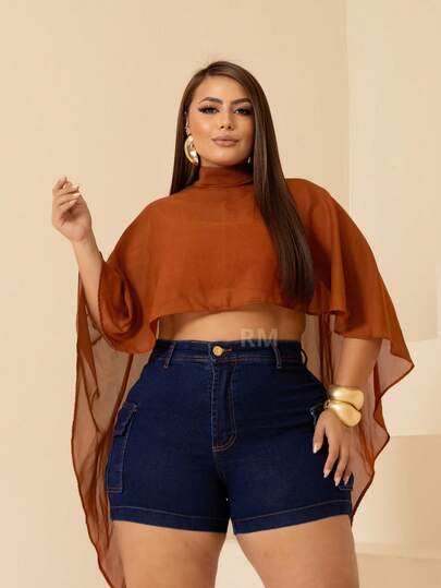 Women's Plus Size Cargo Denim Shorts With Lycra High Waist