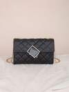 Crocodile Printed Minimalist Crocodile Embossed Buckle Decor Flap Square Bag Crocodile Embossed Square Shoulder Bag, Solid Color Crossbody Bag, Buckle Decor Purse, Animal Print Women Bag