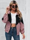 Women's Zipper Button Decor Casual Fitted Short Stand Collar Zipper Jacket, Suede Short Coat