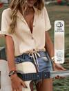 Firerie Crinkle Collar Asymmetrical Sleeve Side Ruched Cinched Waist Commuter Apricot Bamboo Linen Fabric Women Shirt, All Season