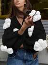 Poéselle Women's Solid Color Arched V-Neck Long Sleeve Single-Breasted Knitted Cardigan In Fall/Winter