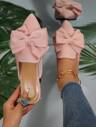 Plusstorlekar och breda slip-on-tofflor för kvinnor med rund tå och rosettdekor, strandsandaler med rem, eleganta och avslappnade skor för sommaren