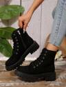 Damstövlar med dragkedja i sidan och litchimönster, snörning, motorcykelstövlar, moderiktiga och eleganta, ny skarvdesign med tjock klack, svart och naken färg, höst/vinter, stövlar för kvinnor