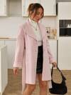 Sunnyshic Apricot Double-Sided Notched Collar, Double-Breasted Button, Pocket Long Sleeve Short Coat, Fashionable For Commuting, Office, Casual, Elegant Retro Style, Suitable For Autumn/Winter