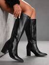 Women's Fashion Black Leather Pointed Toe High Heel Boots, Slim Heel Dance Boots, Winter Boots, Side Zipper High Heel Boots, Black High Heel Boots, Black Winter Boots, Pointed Toe Slim Heel High Heel Boots, Retro Black Winter Boots, Black Boots, Retro High Heel Women's Boots, Mid-Calf Boots, Brown Ankle Boots, Ankle Boots,Stiletto Heels