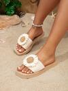 Women's Fashion Flat Square Toe Slip-On Sandals, Versatile For Spring And Summer