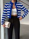 Poéselle Kort smal frontknapp Enfärgad långärmad enkel vardagsstickad kofta, tröja, kort damtröja, damtröjor, stickade tröjor, damkläder för vintern, damkläder för hösten, FW24
