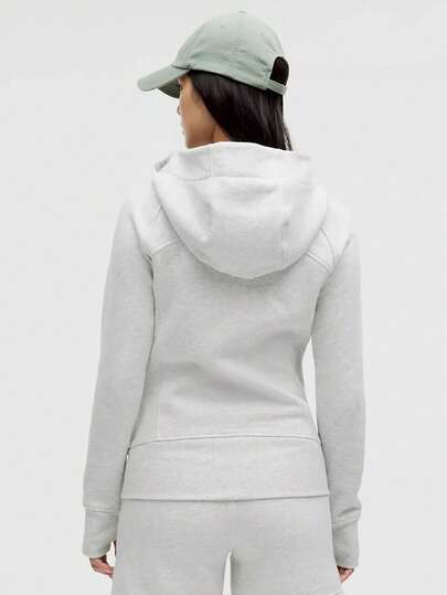 Women Casual Zip Front Hooded Sweatshirt, Slim Fit, Autumn/Winter Outfits For Women - Light Grey - View 1