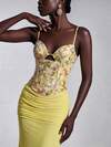 Elegant Yellow Halter Backless Ruched Mini Dress With Tiered Ruffle Skirt - Idea For Summer Party, Beach Vacation, Casual Outing, Festival, Graduation