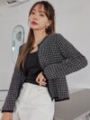 DAZY Plaid Pattern Open Front Tweed Overcoat,Fall Clothes Women Jacket