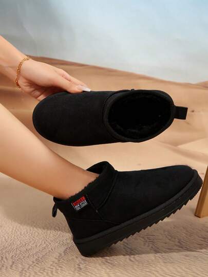 Women's Autumn/Winter New Anti-Slip Warm Thermal Lined Short Boots, Thick Sole Versatile Slim Fit Ankle Boots,Fur Boots,Snow Boots - Black - View 1