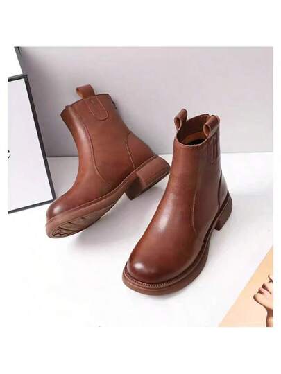 Damstövlar, 2025 Nya höst-/vinterstövlar med tjock sula, Brittiska ankelstövlar, Spetsiga stövlar över knäna - Brun - Visa 2