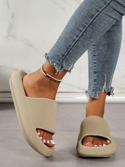Women's Casual Soft Bottom Slippers, Comfortable For Home, Bathroom, Dorm, Office, Beach Wear - Khaki - View 1