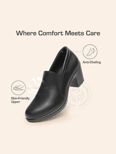 Slip-on design: Elastic side goring design to fits the foot shape, easy-on-and-off low heels shoes with light PU sole ensure a secured walking Latex padded insole for added comfort, relax your feet by avoiding feet's pressure and pain caused by long-time walking Block heels makes long walking will not fatigue the feet, with imitation leather design, skin-friendly and breathable, let your feet fully relax Heel height: 2.75" (approx), round toe with the ideal height for any occasion with create the illusion of longer legs Suitable for working, shopping, wedding and any occasions
