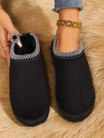 Women's Low Top Indoor Comfy Slippers Winter Warm Shoes - Black - View 1