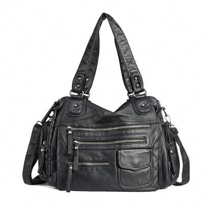 Women's Multi-Pocket Shoulder Bag, Retro Punk Personalized Design Handbag, Fashionable Sexy Ladies Crossbody Bag, Suitable For Daily Use, Party, Commuting, Holiday Gifts - Black - View 1