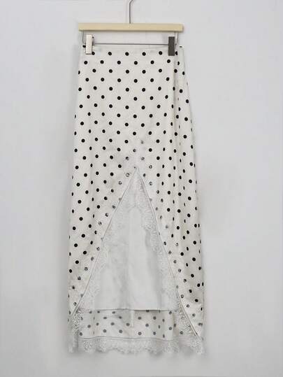Women's New Fashionable Elegant Sexy Commuter Style Lace Patchwork Satin Solid White Color Women's Summer Skirt Spring