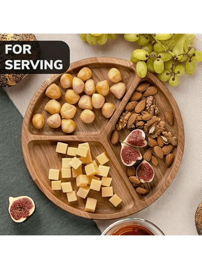 Wooden Tray, Oval Divided Platter, Breakfast Tray, Snack Tray, Tray For Cake, Nuts, Fruits, Snacks, Party, Picnic And Serving Tray, Food Display, Kitchen Utensils - Yellow - View 1