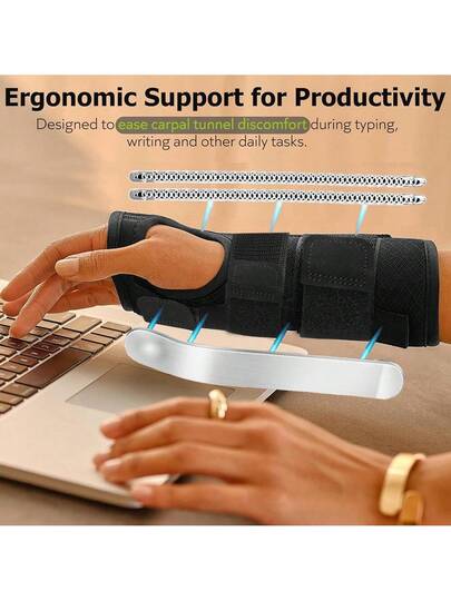 Wrist Brace For Carpal Tunnel , Lengthened Fixed Hand Support For Women Men With Metal Splint, 3 Adjustable Straps Wrist Support For Right And Left Hand Gym Accessories - Black - View 1