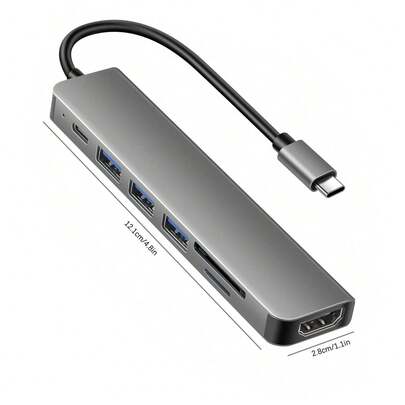 About this item [Versatile 7-in-1 Expansion]This multiport USB-C Hub turns a single USB-C port into 7 convenient ports: 1 USB-C Power Delivery port, 1 USB 3.0 port, 2 USB 2.0 ports, 4K HDTV output and SD/TF card readers. Ideal for multitasking and productivity. [4K Ultra HD HDTV Output]USB-C to HDTV port supports 4K@30Hz resolution, allowing you to duplicate or extend the display on TVs, monitors or projectors for presentations, streaming or gaming. [Fast data transfer]Featuring a USB 3.0 port offering speeds up to 5Gbps, this USB C HUB also includes 2 USB 2.0 ports perfect for connecting peripherals such as keyboards, mice or printers. [Charging via Power Delivery]This USB C adapter is equipped with a 100W USB-C PD port that allows fast and uninterrupted charging for laptops, tablets and smartphones. [Extensive compatibility]Designed as a versatile adapter, this hub is compatible with a wide range of USB-C devices, including laptops, tablets and smartphones with a multifunction USB-C port. This includes popular models like Pro/Air, XPS, HP Spectre, Surface Pro/Go, Galaxy S, and many more. [Portable & Sturdy Design]Made of lightweight and durable aluminum, this multiport USB C Hub is compact and easy to carry, whether for office, home or on the go.