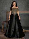 BluePlum Plus size kvinnor högkvalitativ paljettbroderi Splitsband V-ringad A-linje Elegant festklänning för festlig fest, utsmyckad design, gästklänning för bröllop