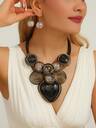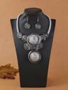 Handgjort, överdrivet, flerskiktat aluminiumtrådsvävt halsband och örhängen i bohemiskt, europeiskt och mellanösterninspirerat format med artificiella kristaller, lämpligt för kvällsfest och semester.