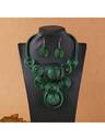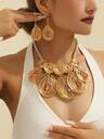 Handgjort, överdrivet, flerskiktat aluminiumtrådsvävt halsband och örhängen i bohemiskt, europeiskt och mellanösterninspirerat format med artificiella kristaller, lämpligt för kvällsfest och semester.